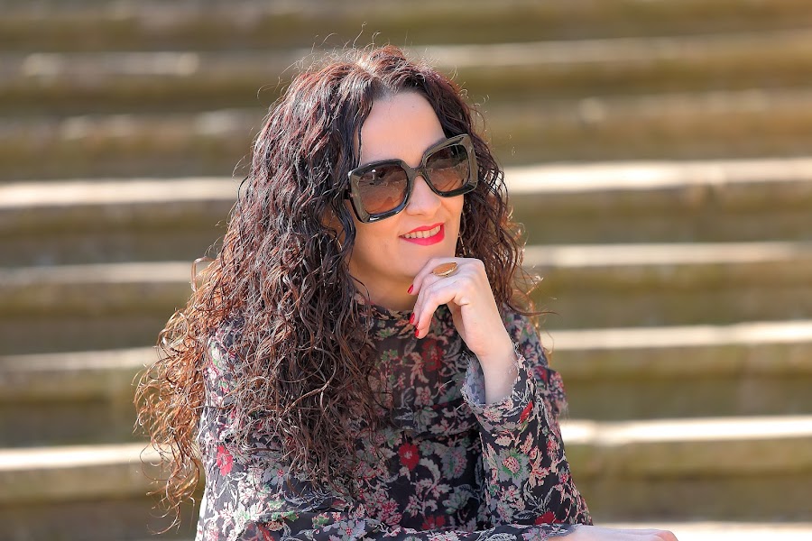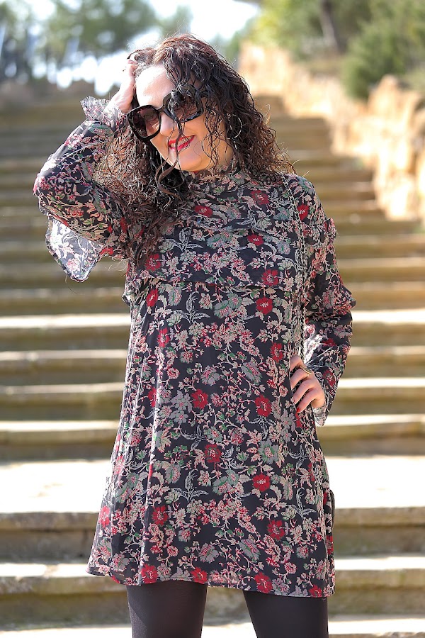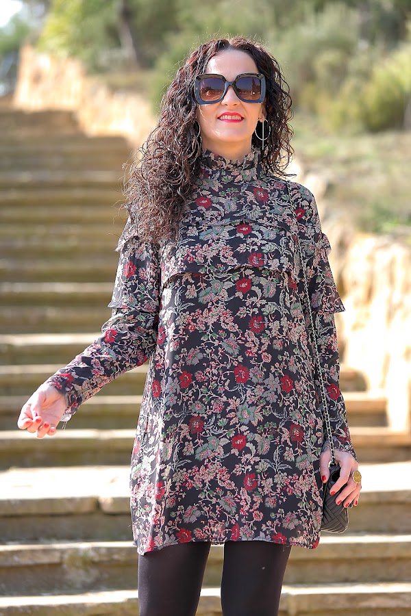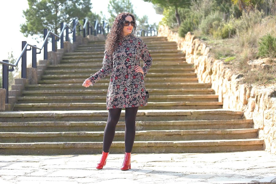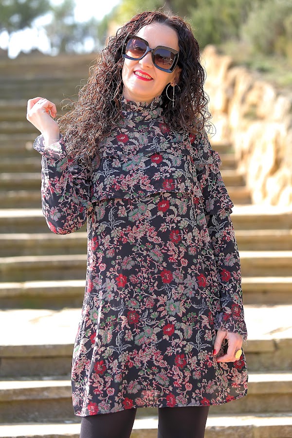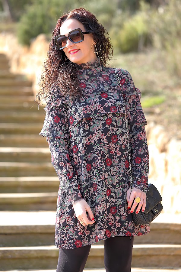Para terminar la semana os enseño este look en el que llevo un vestido con estampado de flores. Espero no cansaros pero... ¡qué le voy hacer si me gustan tanto las prendas con flores!. El vestido de hoy me enamoró por el tejido flojito y los volantes en pecho y puños. Hoy lo llevo con mis botines rojos, sí, desde que me acordé de ellos y los me llevé para mis vacaciones es que no me los estoy quitando. Como bolso esta joyita de Purificación García que ya me lo habéis ido viendo desde hace unos días. Lo tenía en mente y mi madre que lo sabía se adelantó y me lo regaló por sorpresa, siempre tan buena y tan detallista conmigo. Si es que el dicho es pura verdad, ¡madre solo hay una y la mía es la mejor!.