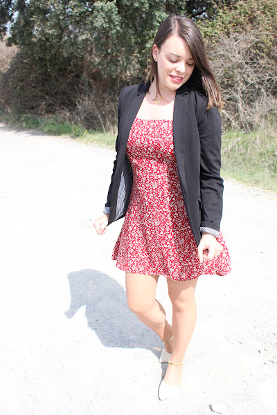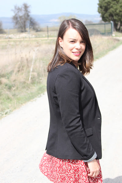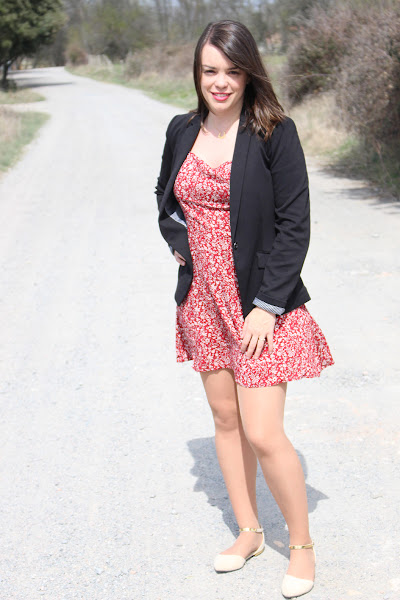 Como el tiempo está loco y unos días hace de verano y otros de casi invierno, lo que menos hace es Primavera jajaja así que lo he combinado con unos zapatos abiertos y una blazer en negro y así el outfit no es tan veraniego y sirve para diferentes ocasiones.