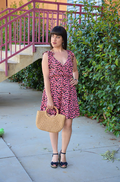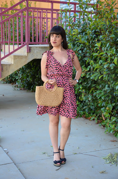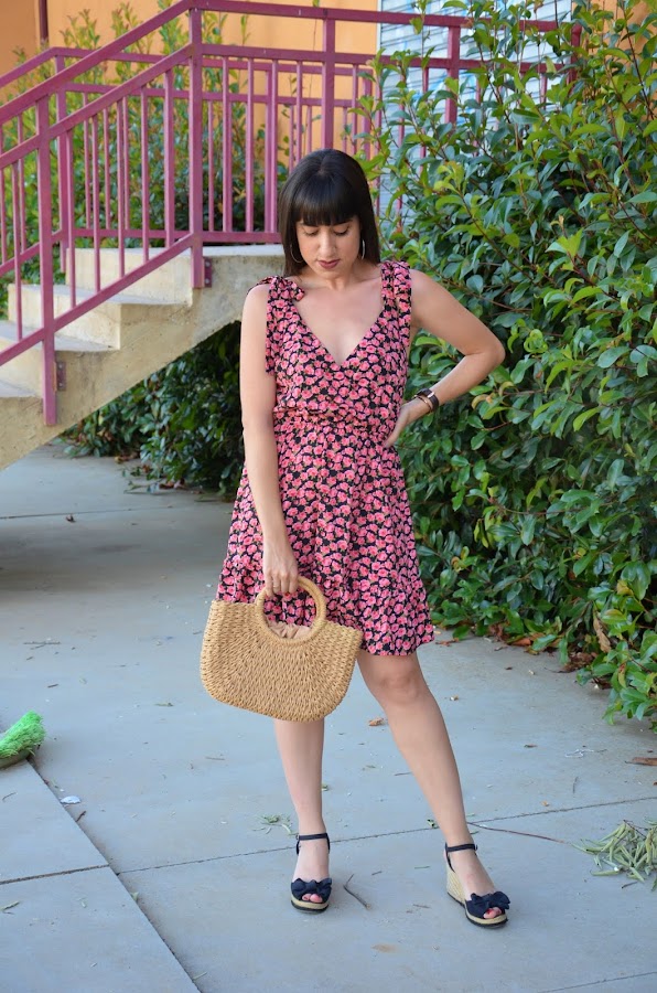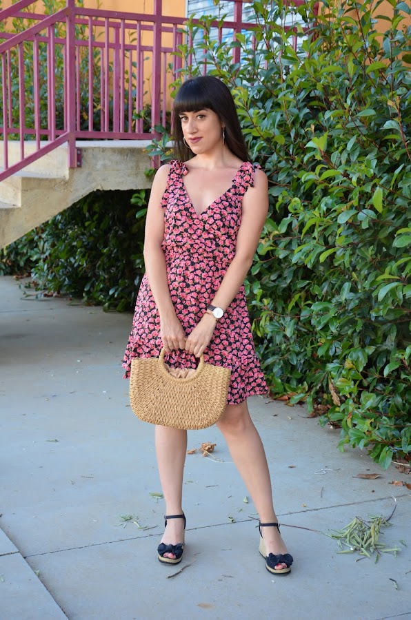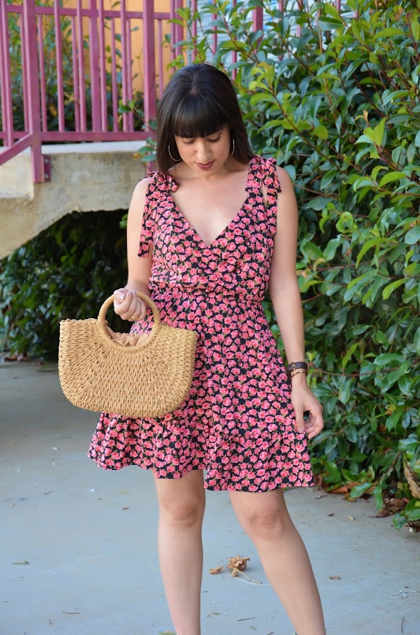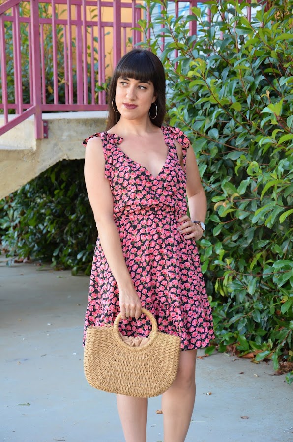 Hoy me decidí por este de estampado de rosas, un print que me encanta. Tiene los tirantes a modo de lazadas, le dan mucha gracia al vestido.