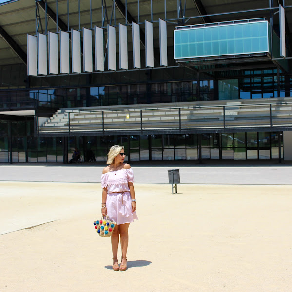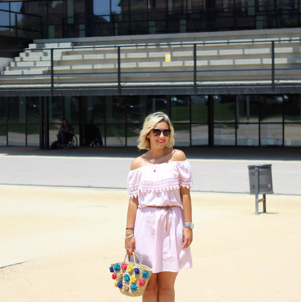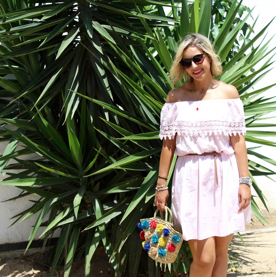 Hoy os quería enseñar mi nuevo vestido de Qué Guapa. Cuando vi este vestido tan dulce y romántico con escote bardot, en color rosita claro y con encaje en el bajo del volante, vi que estaba hecho para mi y no dudé ni un segundo en hacerme con él. Lo combiné con mis sandalias en color camel y con mi nuevo capazo con pompones de Purificación Garcia, que me tiene robado el corazón.