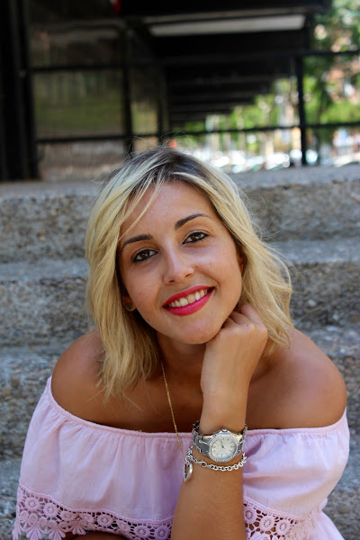 Today I show you my new dress of Qué guapa. When I saw this dress so sweet and romantic with bardot neckline, soft pink color and with lace in the back of the ruffles, I saw that it was perfect for me and I didnt doubt to buy it any second. I wore it with camel sandals and my new bag with pompons of Purificacion Garcia that Im completely in love with it.