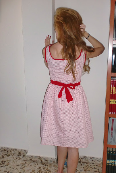 Hoy os enseño mi vestido favorito sin duda alguna de esta temporada(incluso diría que el favorito de todos mis diseños). Es un vestido con un aire totalmente cincuentero, ya que sabréis que amo esta época. Lo mejor es dejaros directamente fotos sin tanto relato.