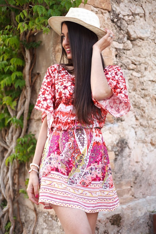 El estampado estilo shibori es precioso. Me lo puse con un fino cinturón para marcar cintura.