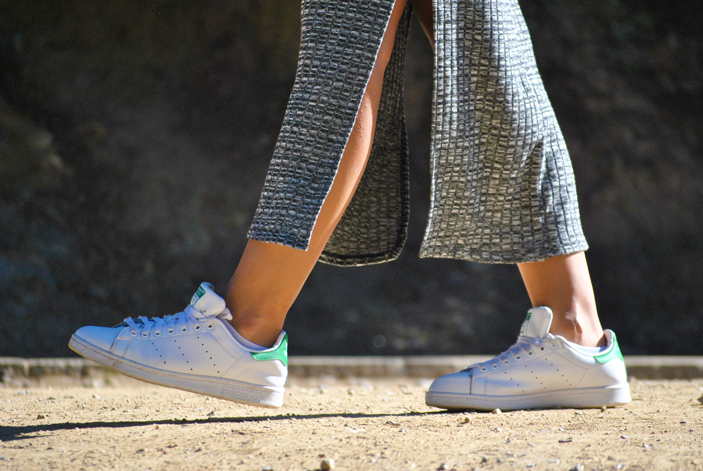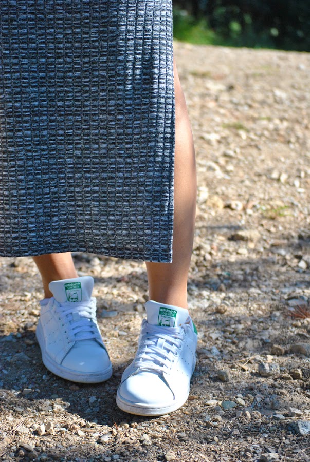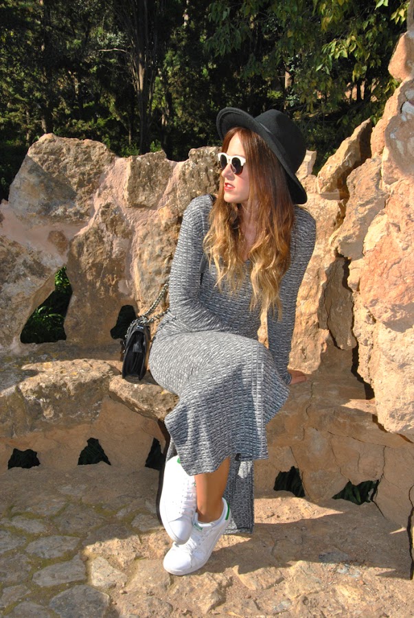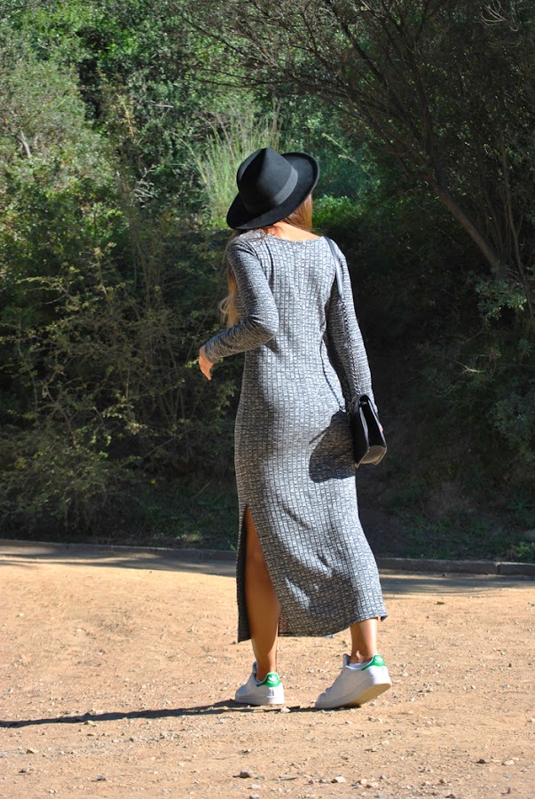 ¡Buenas noches a tod@s! En el post de hoy os presento un look sporty compuesto por un must have de la temporada, el vestido gris y un clásico, las Stan Smith. El vestido lo compré en Bershka y es de canalé elástico, largo y con aperturas laterales. Esta combinación es una de mis preferidas aunque las Stan Smith son unas zapatillas muy versátiles que se adaptan prácticamente a cualquier estilo, así que si os gustan que no os de miedo combinarlas con prendas imposibles, ¡el resultado seguro que es increíble! Para conseguir un toque desenfadado añadí como complementos un sombrero fedora y mis nuevas gafas bicolor de Wolfnoir.