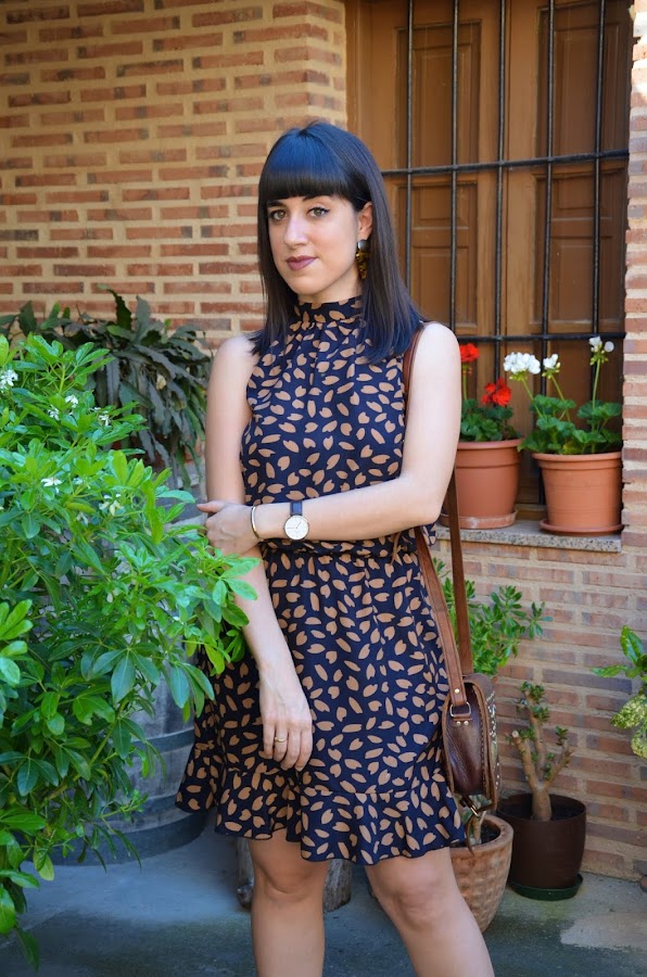 Hoy os traigo un nuevo look para empezar con fuerza la semana y aprovechando que hace solazo me he animado a estrenar este vestido halter de estampado en tonos marrones y negros de Shein.