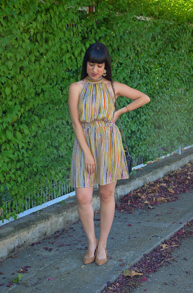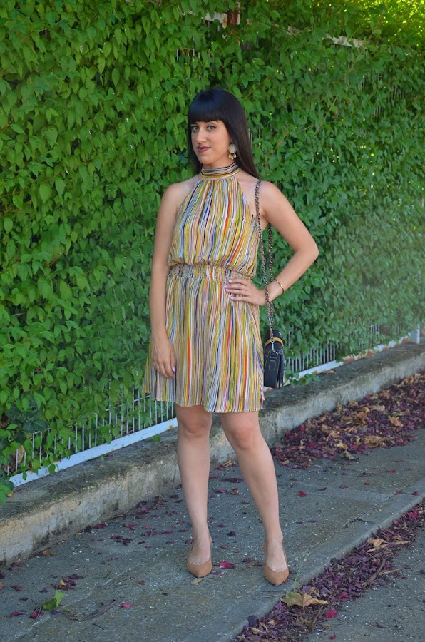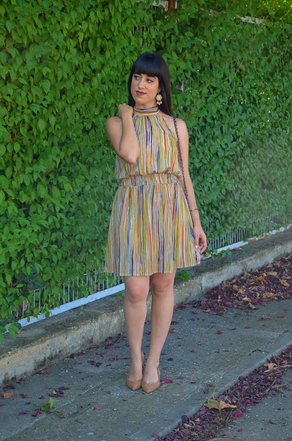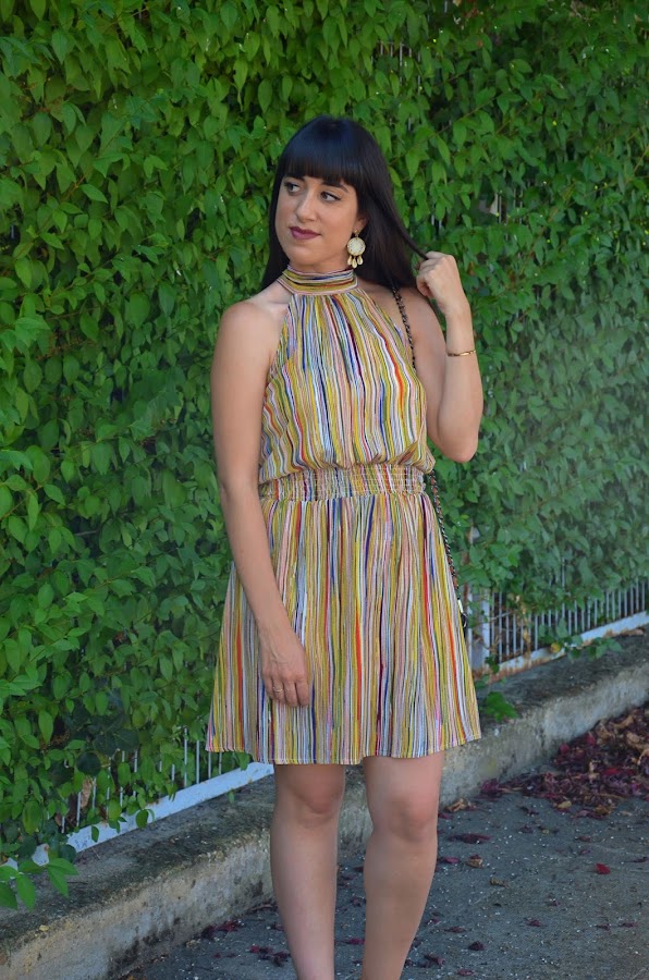 Los vestidos halter son un must del verano y si además tienen estampado a rayas y multicolor, son una prenda ideal para nuestro armario estival como es el caso de este de Shein.