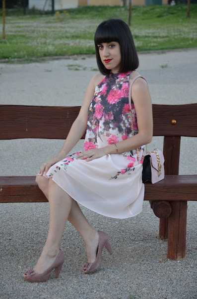 Hacía ya un par de semanas que no actualizaba con un look y ya iba tocando. Tengo un montón de cositas nuevas que enseñaros pero quizás mi prenda favorita es este vestido halter con estampado de flores de Shein.
