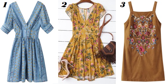 1- Leaf print dress HERE, 2- Boho dress HERE, 3- Floral print dress HERE