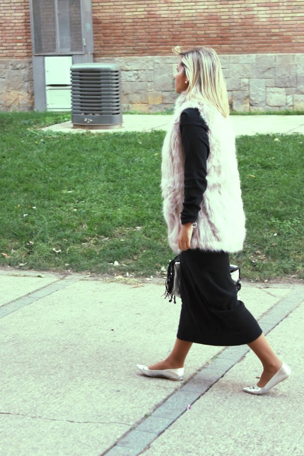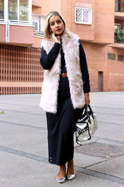 In the outfit of the day, I wear Kiba model in black. I decided to wear as a long dress that its a trend this season, but another option will be a short dress and I will show you in another post. I wear it with a faux fur vest and I put a belt to mark my waist. The accesories were my kitten flats of Asos and my silver bag of Tous, to give a touch of color to the outfit. A perfect casual outfit to wear during the weekend.