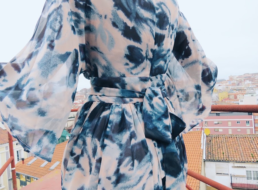 I chose this vaporous one with a V-neck and tight to the waist.