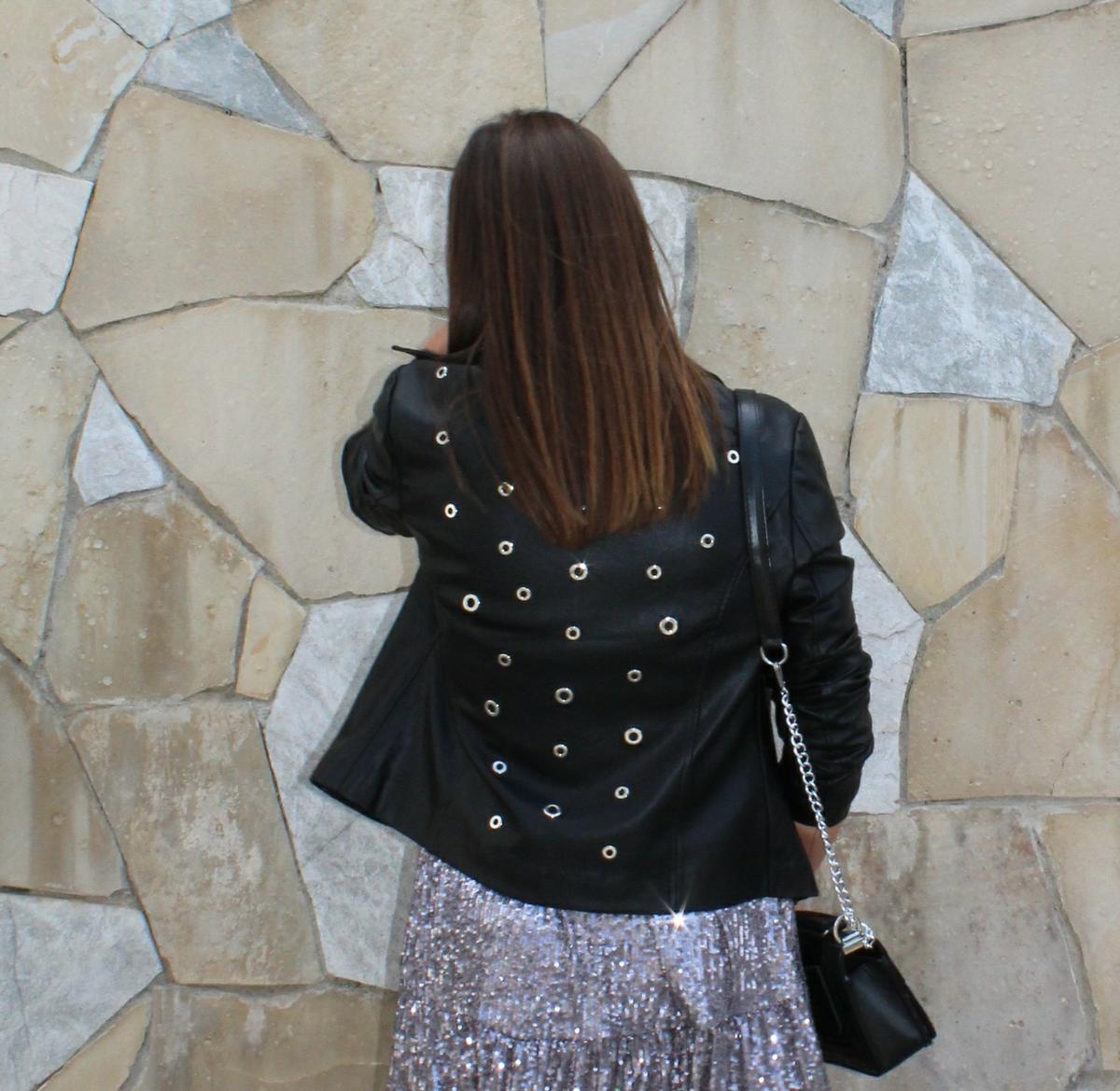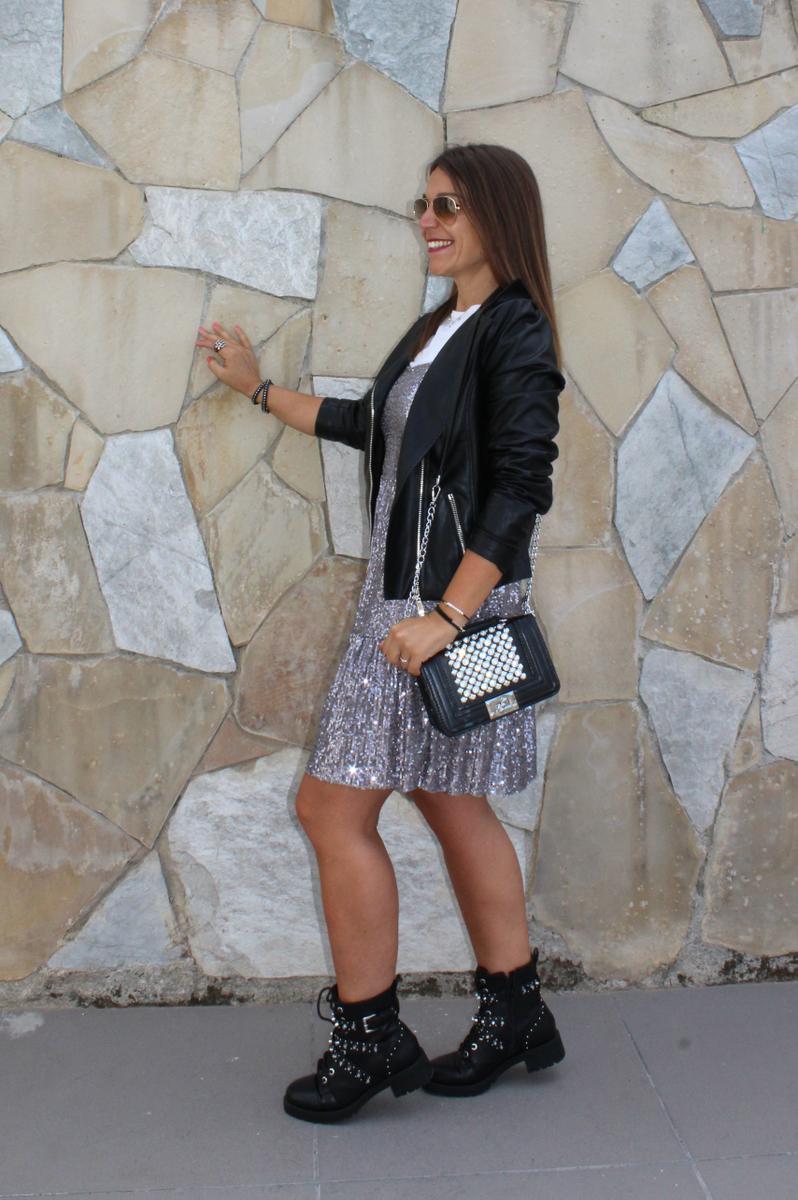 Como os decía, para llevar lentejuelas por el día, sin que parezca que he amanecido de fiesta sin pasar por casa, yo opto por combinarlo con prendas de estilo totalmente opuesto o por lo menos, que como os comentaba al principio, rebaje el aire sofisticado que llevan implícitos » les paillettes «
