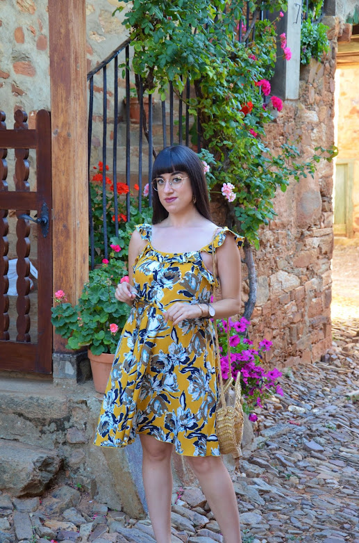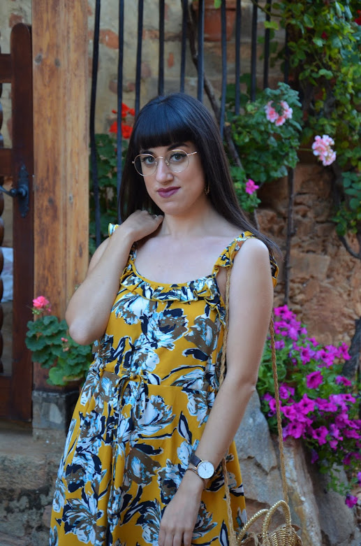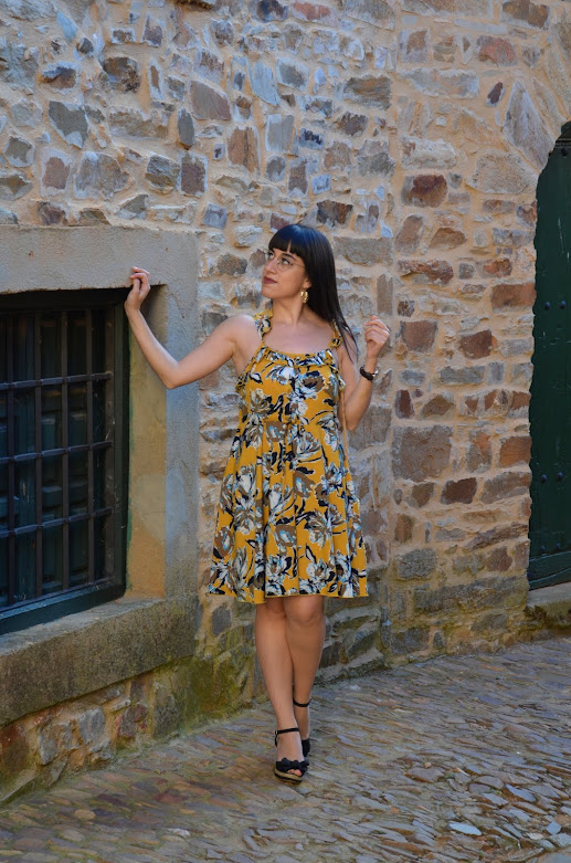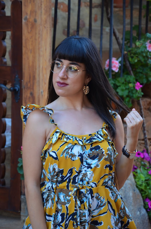 Ya que fuimos a dar un paseo de domingo aprovechamos para hacer algunas fotos y así os puedo enseñar hoy este vestido mostaza de tirantes con estampado de flores de Dresslily. Es muy ligero y fresco, ideal para el verano. Tiene una combinación de colores que me encantó en cuanto lo vi en la web, es muy alegre.