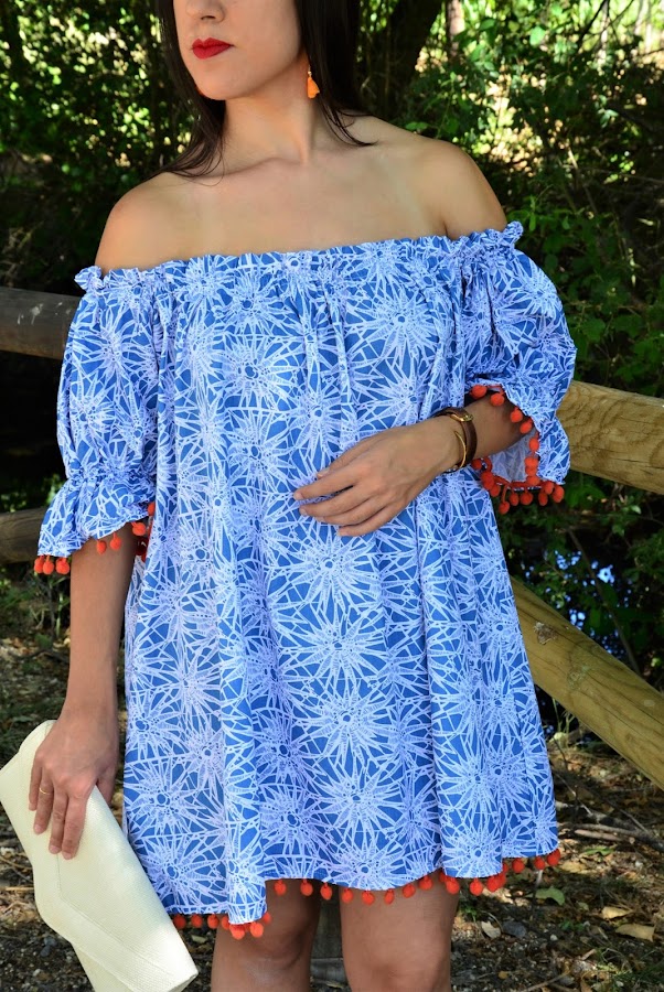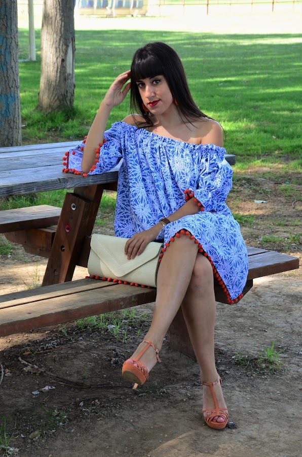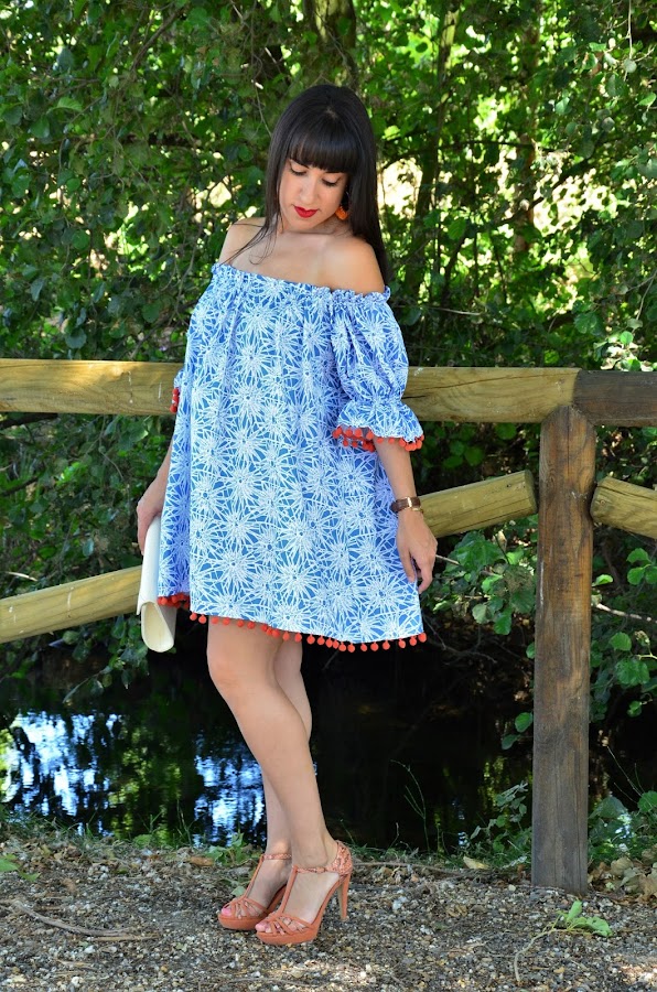 La combinación de colores me gustó mucho y el detalle de los pompones en mangas y bajo me acabo de convencer. Es muy cómodo y la tela me ha gustado mucho, no se arruga y es muy fresca. Si os gusta y lo queréis pedir, os recomiendo que os cojáis una talla pequeña, ya veis que es un vestido bastante amplio. Yo pedí la talla más pequeña, la S y ya veis que hace a varias tallas.