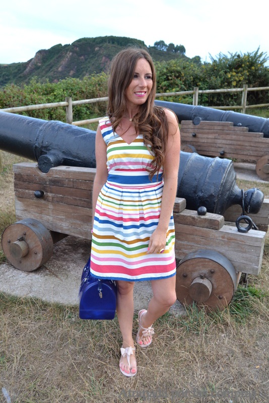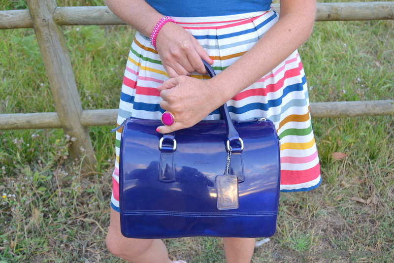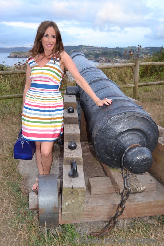 Las prendas de rayas han sido unas de las protagonistas de esta primavera/verano 2013, de todos los tipos y colores: verticales, horizontales, marineras..... Sumadas a otra de las tendencias de esta temporada que ha sido la gran variedad de colorido que hemos tenido: fucsia, azul, amarillo, verde.... da como resultado este precioso vestido de ROCOCOA CANDÁS que además pertenece a la colección diseño propio de la tienda. Un vestido muy favorecedor por el corte que tiene, cómodo y muy versátil, también trae un cinturón a juego en color fucsia pero en esta ocasión preferí ponerlo sin él. Cada vez que lo veo no puedo evitar recordar los vestidos de rayas que sacara Marc Jacobs hace un par de temporadas.