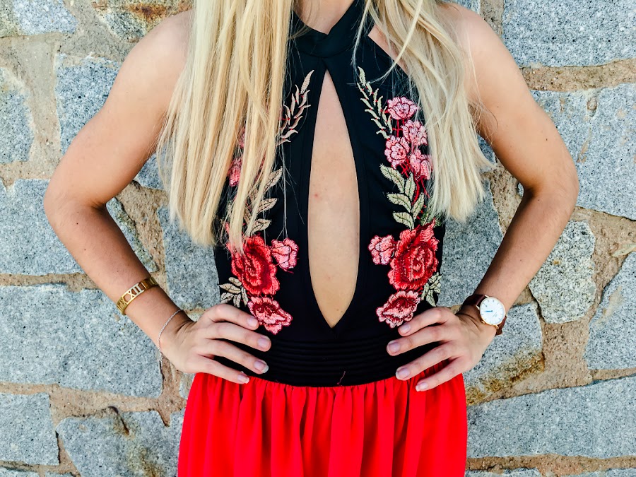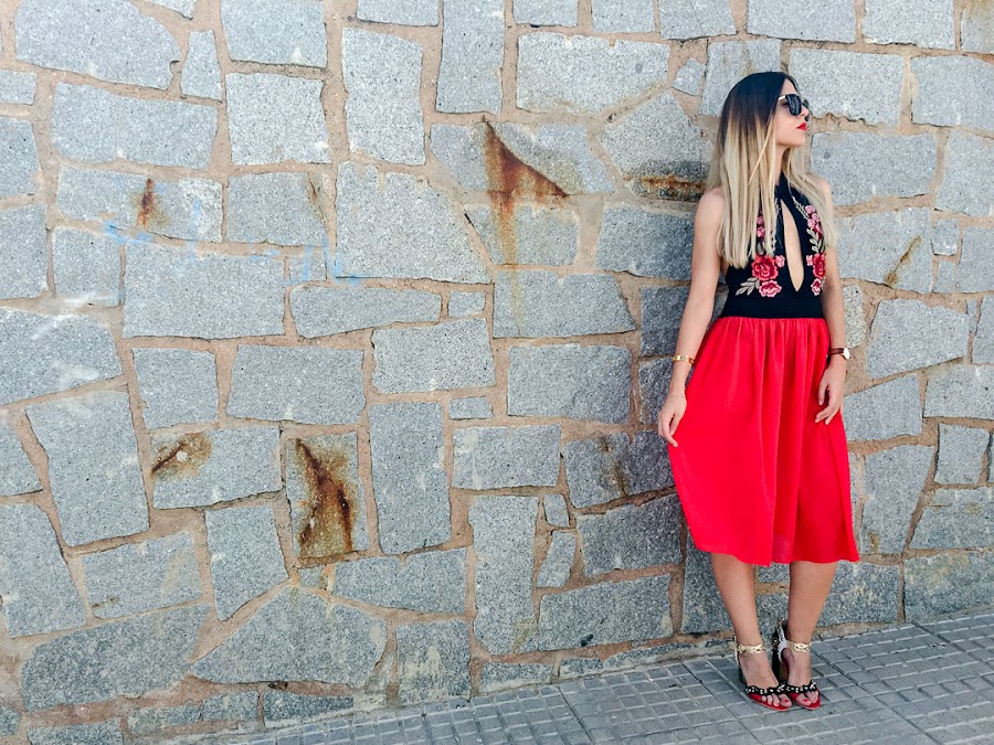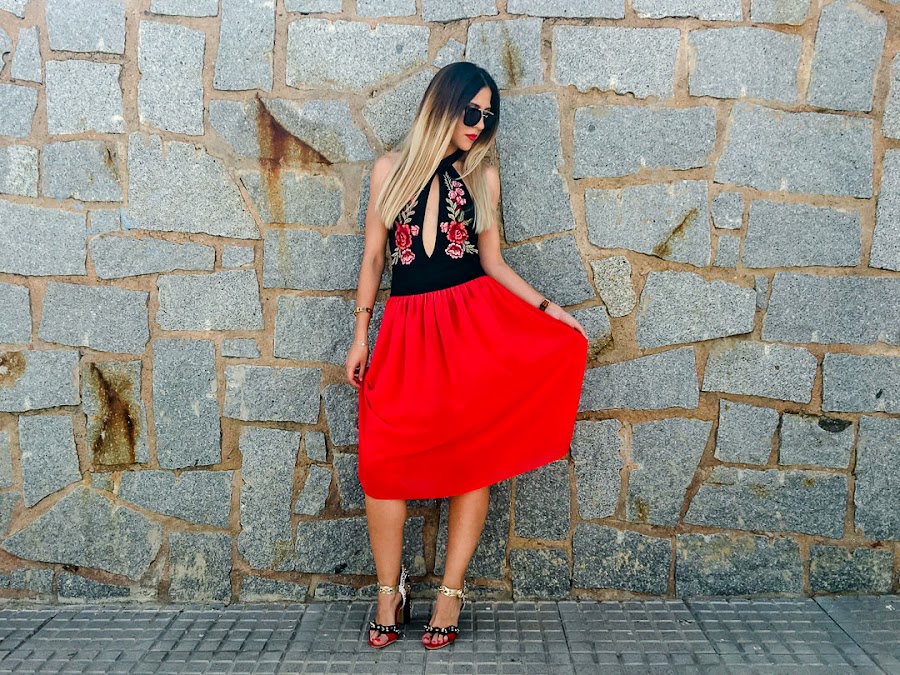 Today I bring you a very sexy new look with a black floral embroidered body on the chest and a very sensual neckline from NASTYDRESS. The truth is that I thought about it more than twice when ordering this body, since having little breast, I doubted if I would look good, but I could not resist !! I have combined it with a red tulle skirt with black waist of YOINS.