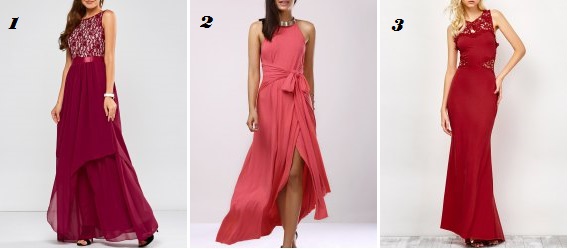 1- Vestido color vino AQUÍ, 2- Vestido rosa AQUÍ, 3- Vestido rojo AQUÍ