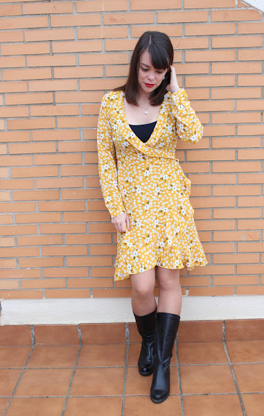 Encima estoy emocionadísima porque el protagonista del outfit de hoy es un vestido que me tiene enamorada totalmente, de estilo romántico y con este color amarillo que me alucina, las florecitas, no sé, me gusta muchísimo.