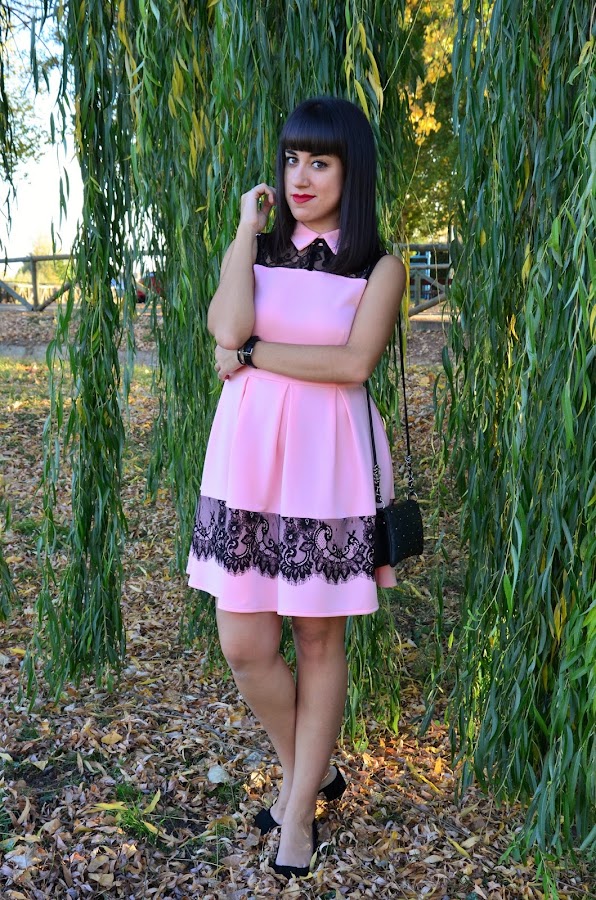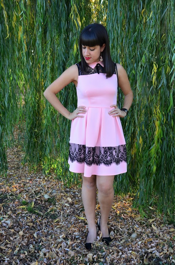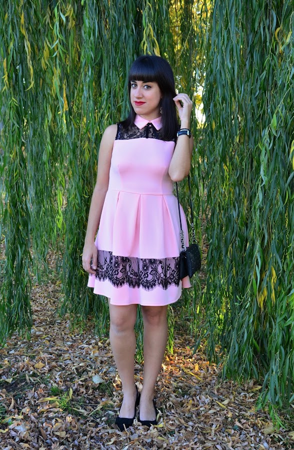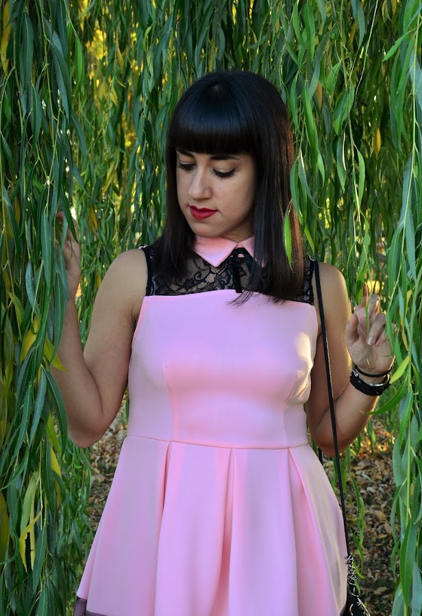 Hoy os traigo un vestido preppy, en color rosa chicle con cuello y lazada y detalles de encaje. Es de Rosegal, la tela es elástica y fuerte y sienta como un guante.