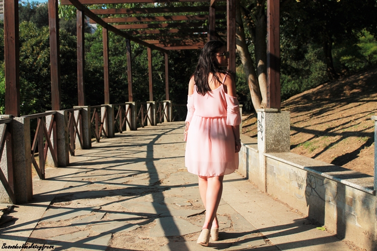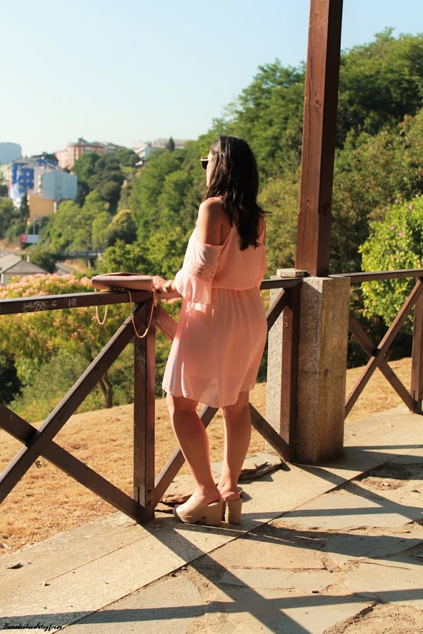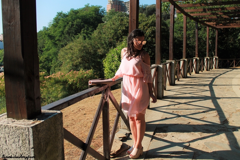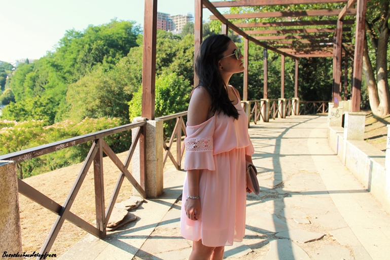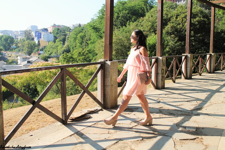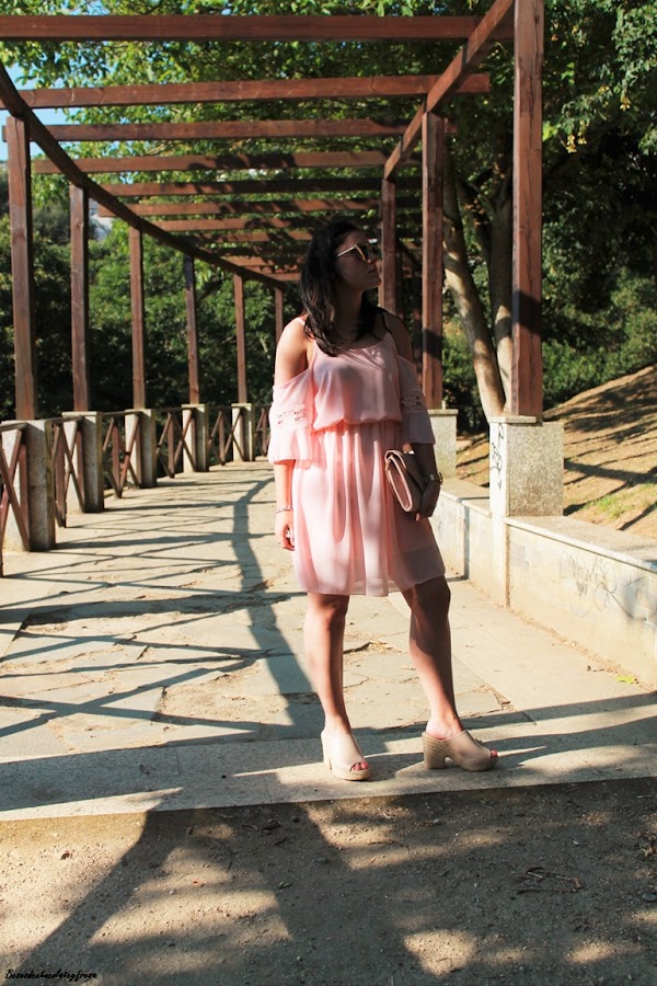 Today I show you a very sweet yet elegant as it approaches the weekend look, there to receive it as truth deserves? I show a look with dress in dusty pink, this season along with the blue serenity combined it with nude. It is my @besosdechocolateyfresashop online store with crochet details on the sleeves, as another trend that has this dress is that it is cutt shoulder dress, with sleeves and suspenders finite bare shoulders.