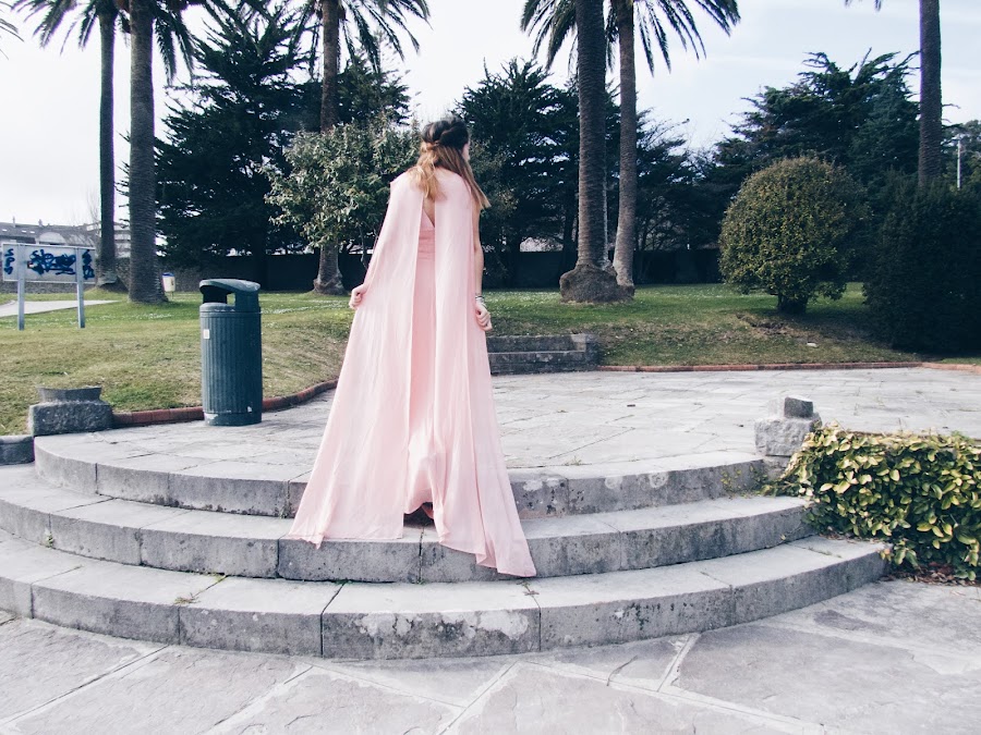 In addition it has on both shoulders two long strips of silk that give the dress the different and elegant that I like so much.