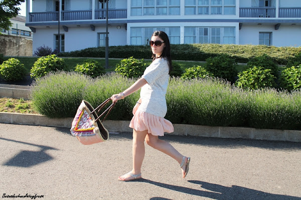 Lo combiné con sandalias en dorado y capazo de 3mishadesign en tonos rosas también que es una auténtica joya. Un look sencillo y minimal.
