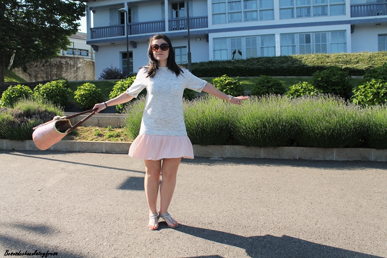 Hoy os muestro un look que os enseñé hace unos días por mis redes y que os encantó por el tipo de vestido que llevaba. Se trata de un vestido tipo sudadera en gris y rosa empolvado en la zona de la falda plisada. Es de Stradivarius de esta temporada y sienta super bien a la vez que es super cómodo.