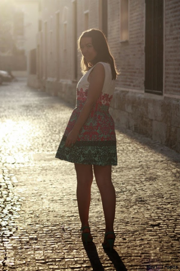 ¿Qué tal ha ido el fin de semana? Nosotros hemos estado de celebraciones con la familia pero hemos sacado un ratito para hacer fotos y enseñaros uno de mis looks con este vestido que me encanta por su estampado barroco y su colorido.