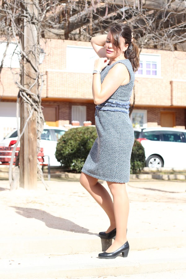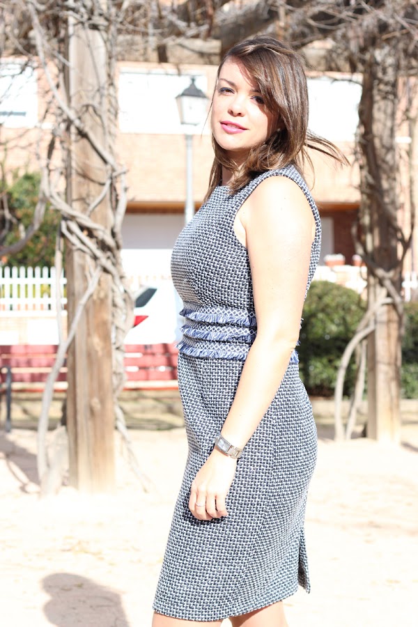 Hoy nos ponemos elegantes gracias a mi nuevo vestido de SheIn, un vestido de tweed en tono azul con flecos en la parte de la cintura, que me llamó mucho la atención cuando lo vi, porque aunque sé que no es un vestido de usar mucho ni es tanto mi estilo porque es un vestido de corte clásico y la tela también, me parece ideal para una comida formar, una celebración, etc. muy de como yo lo llamo "ejecutiva sexy".