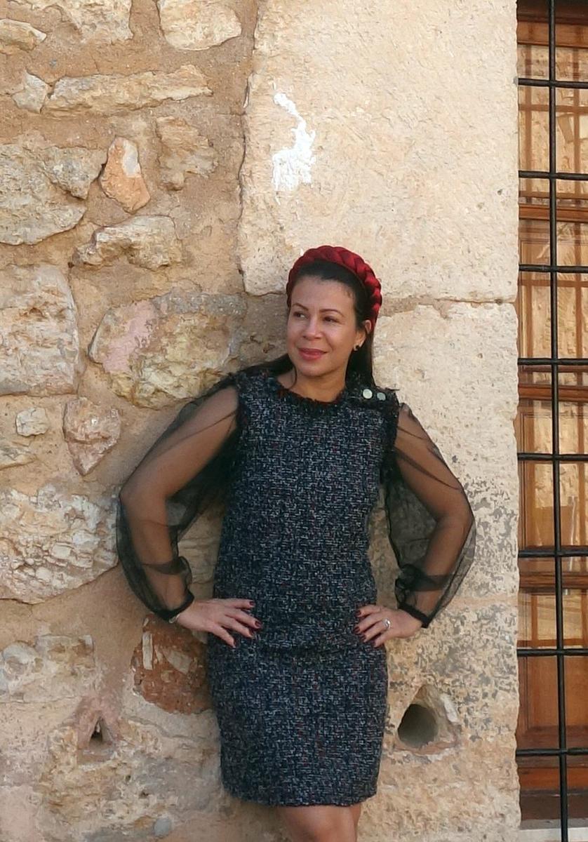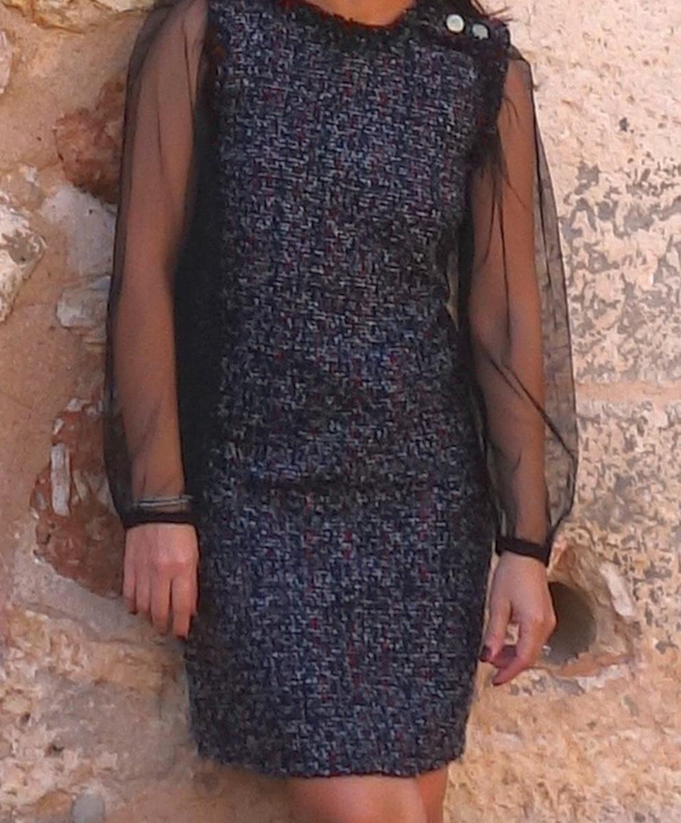 Tejido Tweed (Donnegal) Junto con este vestido quiero enseñar dos tendencias que ya vienen de la temporada pasada y que aún se están viendo. Vamos con la primera… las transparencias, esta tendencia comenzó por ahí en el verano si no estoy mal y creo que para estas fiestas seguirá porque me parece ideal para los looks de las navidades.
