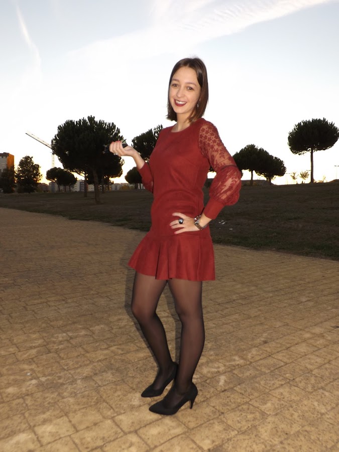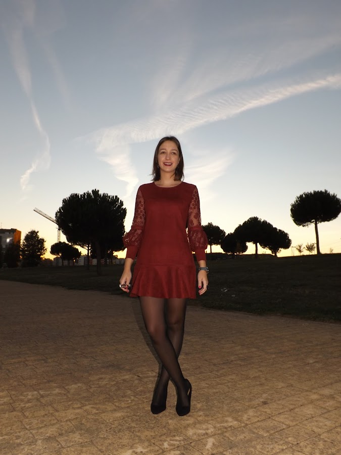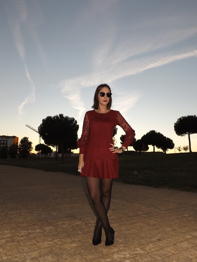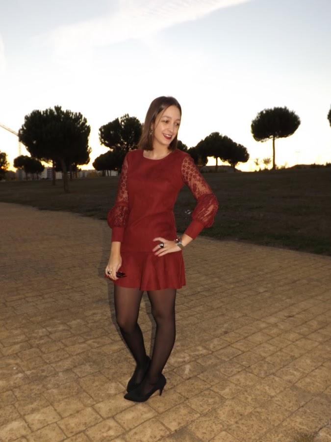Como sabéis, hace tiempo que hice un pedido a Zaful y hoy por fin os enseño lo que me vino en el paquete: este precioso vestido granate de ante y encaje.