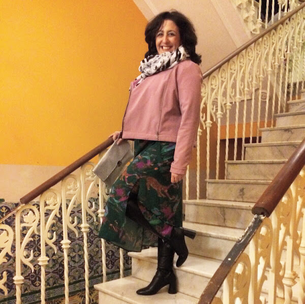 Lo combine con mi pink ladies, y creo que el resultado es genial así. Publique la foto, porque al llegar a esta escalera y ver el papel de la pared, me pareció que ese era mi lugar, que me había vestido para la ocasión, no podía quedar mejor mi vestido con este papel, ¿No creéis?