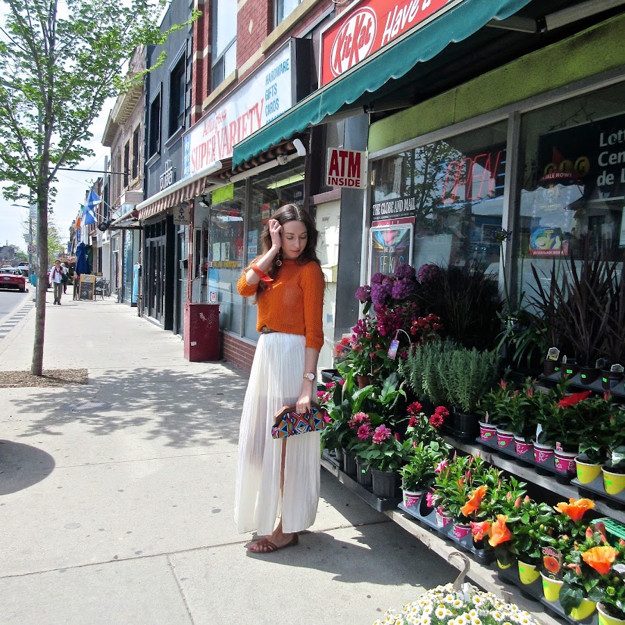 Éste es el outfit que utilicé el Jueves pasado para pasear con una amiga. El día era estupendo: el cielo estaba despejado, brillaba un Sol radiante y según el pronóstico las temperaturas se mantendrían bastantes cálidas. Así que, teniendo ésto en cuenta y el factor que en Toronto el tiempo puede cambiar en un abrir y cerrar de ojos, me decante por un atuendo airoso y muy relajado, que fuera fresco pero a su vez no dejase al descubierto demasiada piel, por si bajaban de repente las temperaturas.