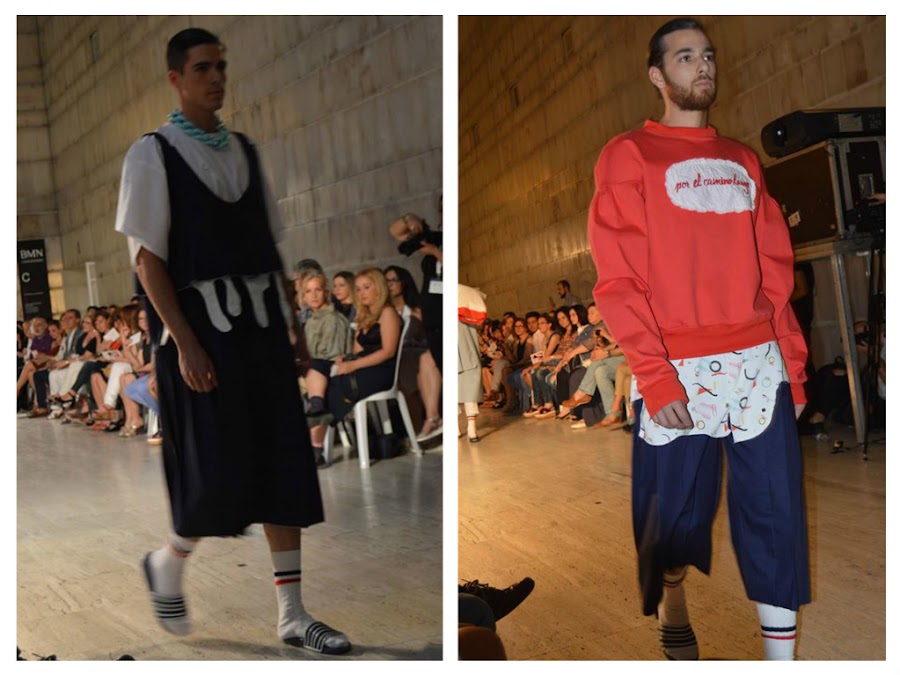 Destacaría de este desfile la fluidez de movimiento de los tejidos y como no, a los dos protagonistas de la noche, que seguro que si buscáis en RRSS Pasarela Fortuny salen multitud de fotos de ellos.