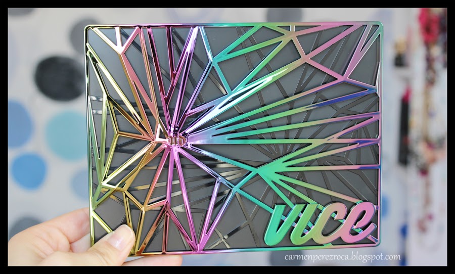 El packaging es superoriginal viene dentro de una funda de tela acolchada con cremallera, que también puede utilizarse como neceser. La tapa imantada está diseñada con un entramado de líneas en 3D con infinidad de colores que me recuerda a la refracción de la luz a través de un cristal sobre un fondo negro, y por dentro nos encontramos con un espejo que abarca todo el espacio. Además también viene un pincel de doble cabeza para aplicar y difuminar de muy buena calidad