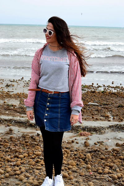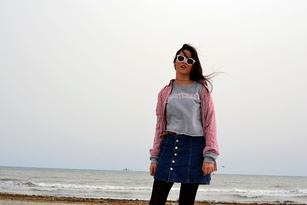 Como lo único que he querido, básicamente, es darle protagonismo a la camisa la he combinado con esta sudadera crop gris, falda vaquera abotonada -menos un maldito botón que no deja de caerse- y fundamental: sneakers.