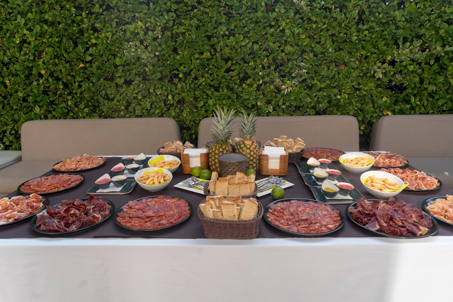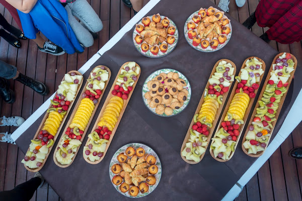 Había cosas para todos los gustos. Pan tostado con jamón, fruta, galletas, muffins rellenos de chocolate... además de café, té y zumo natural.