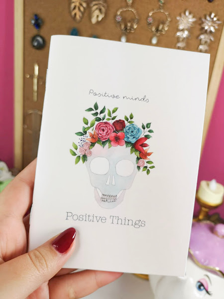 Nos regalaron una libretita super mona. A mi me toco esta con una calabera con corona de flores que no puede gustarme mas. Ademas las hojas de dentro son de color rosa.