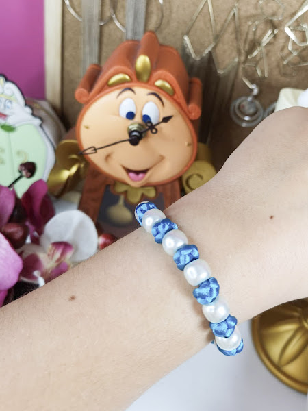 Cristina Gallardo nos regaló esta preciosa hecha a mano. A mi me toco en tonos azules con perlitas.