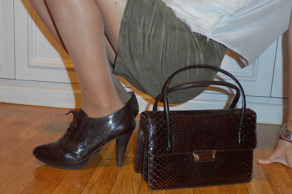 El título del post viene a raíz de los complementos que llevé. El bolso y los tacones son, sin duda, la estrella de look. Y lo más sorprendente es lo bien que combinan juntos. El bolso es de mi abuela de cuando ella era joven (a mí me recuerda mucho al estilo años 50 de "Velvet"). Nos lo dio hace poco porque ella ya no lo usaba y me enamoré de él en cuanto lo vi. Los zapatos, sin embargo, son de mi madre. De esos pares que te compras, dejas de usarlos durante mucho tiempo y años después te acuerdas de ellos y los llevas a tintar de un color más actual para volver a sacarles partido. En definitiva, esta es la muestra clara del carácter cíclico de la moda: se transforma y se reinventa de manera continua.