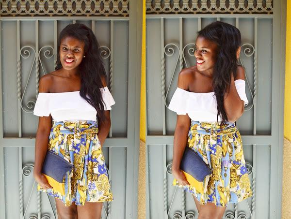 La falda era midi , cosa que sabéis que a mí las falda midi me chiflan pero con este estampado no me cuadraba y enseguida pensé que con un buen corte le daría mucho uso y así fue. Le pedí a mi madre que me la arreglase y el día siguiente ya la tenía, y sé que en verano me la pondré muchísimo...comencé a ponermela el viernes que fue la cena de clase.