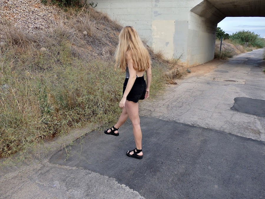 Bañador-top: vintage | Shorts: Levi"s 501 | Sandalias: Bershka | Anillo: Primark
