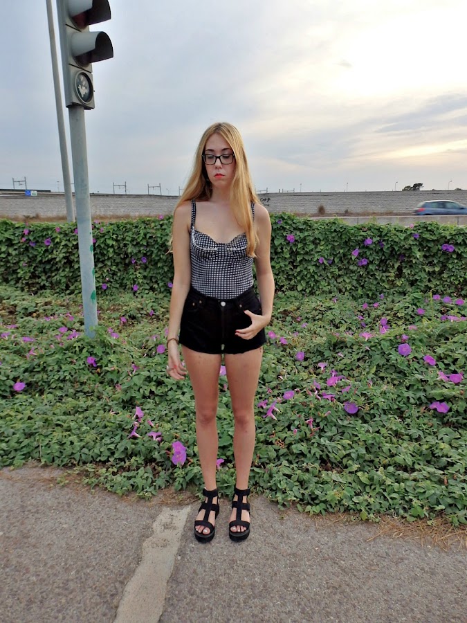 Hace ya un tiempo descubrí este bañador en un mercadillo, y en cuanto lo vi me fascinó, tanto por su estampado como por los detalles que tiene en el pecho. Cuando me lo compré no sabía muy bien que uso darle por que yo no soy muy de bañadores y a parte me gustaba más como camiseta. Un día me lo probé con los shorts que llevo en el post y me encantó el efecto que hacía, ya que el hecho de que esté toda la espalda al aire me parece que queda muy bonito.