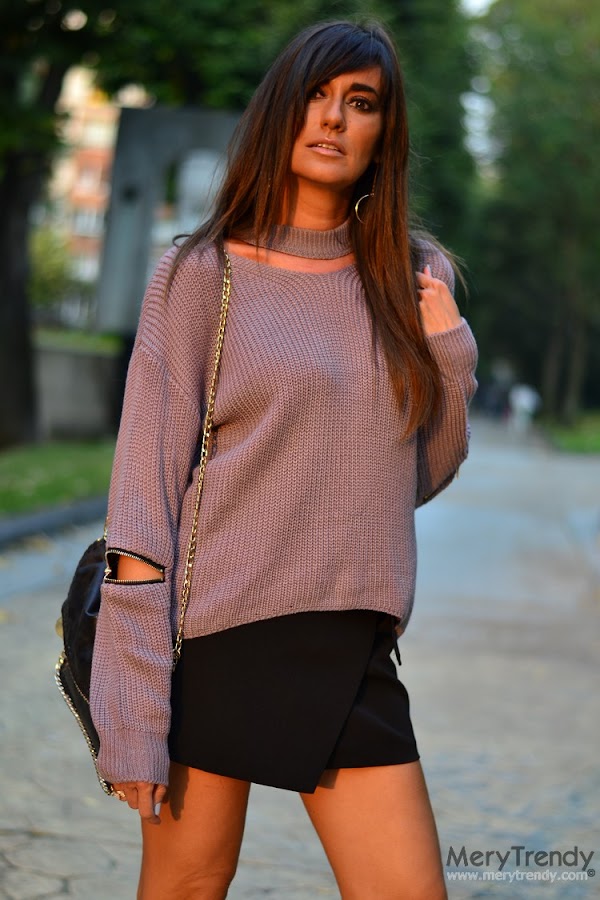 Hoy estreno este jersey de Romwe que quería enseñaros porque, aunque la incorporación del choker a la prenda ya no sea una novedad esta temporada (es más, tengo uno muy similar en verde de la primavera pasada; véase aquí), el toque de las cremalleras en las mangas le da un puntito diferente que lo hace más especial, ¿no creéis? Además, me chifla el color...
