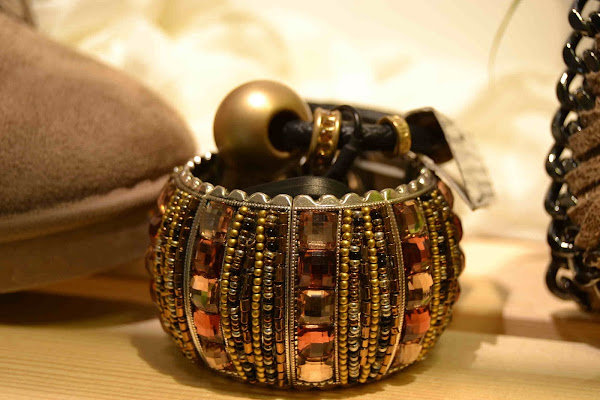 Para combinar con los looks en marrón, beiges, blancos y negros, tienes muchos accesorios de pulseras, anillos, cinturones y las plumas para llevar encima de tus botines