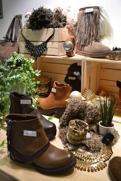 La estrella del escaparate es el maniquí que posa con una fabulosa corona de plumas indias como toda una diva del bohemio chic