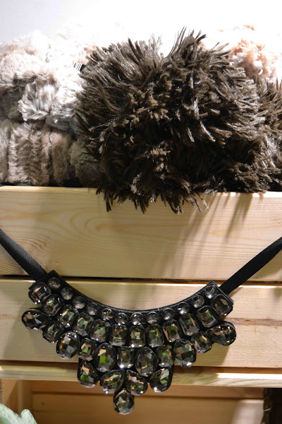 En el escaparate pequeño encontrarás una combinación de complementos y accesorios: bolsos, chaquetas, bufandas, botines y collares para combinar con negro y blanco
