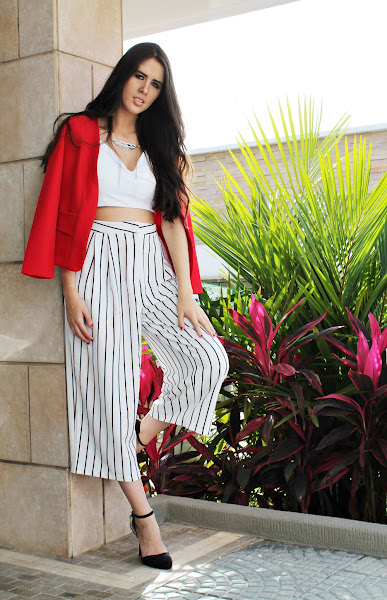 Blazer y Collar Largo: Sahara / Crop Top: Zaful / Culotte: True Addictions / Collar de Hoja: Koru / Zapatos: Marli
