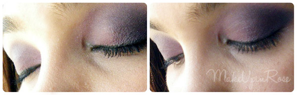 He utilizado el morado más oscuro (el de abajo del todo), y un poco de la sombra fucsia (pigmenta mucho, así que mejor aplicar poca cantidad si la utilizamos para un look de día). En las pestañas llevo la máscara MegaVolume que os mostré hace unos días, como veis a mi no me crea ese volumen que necesito, pero queda muy natural.