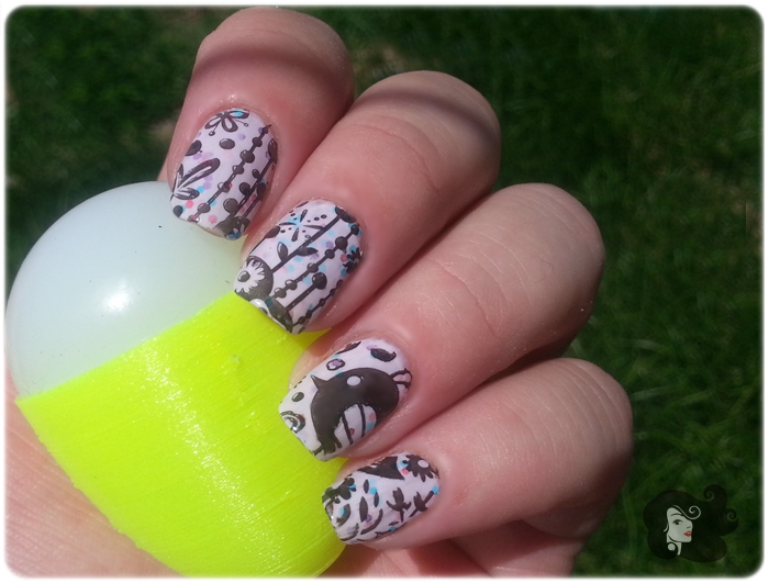 Yo no soy la reina del stamping ni mucho menos, por ende me costó un poco agarrarle la mano al sello, no mucho, pero la verdad es que como es curvo y, por lo menos yo, estoy acostumbrada a los sellos planos me costó un poco porque cuando quería levantar la circunferencia completa se me secaba el esmalte, hasta que recordé lo que me dijo mi amiga Rocío: