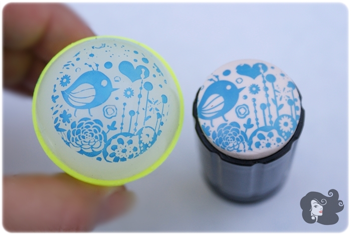 Sin lugar a dudas es mucho más grande que mis otros sellos, en esta imagen pueden verlo junto a un sello regular de 3cm que es el que voy a usar para comparar el tamaño del estampado.